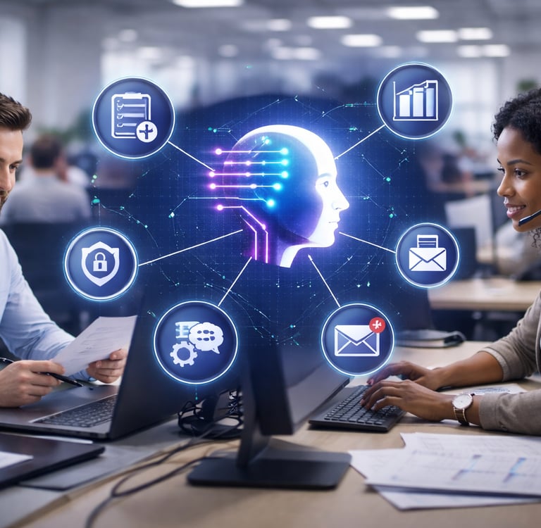 AI agents act as intelligent digital workers that automate routine business tasks and streamline operations. They can manage workflows, respond to IT support tickets, analyse data, generate reports, and trigger actions across systems without human intervention. For example, an AI agent can triage and resolve common IT issues, automatically route approvals, or monitor compliance activities. By handling repetitive processes, AI agents improve efficiency, reduce response times, and allow employees to focus on higher-value, strategic work.